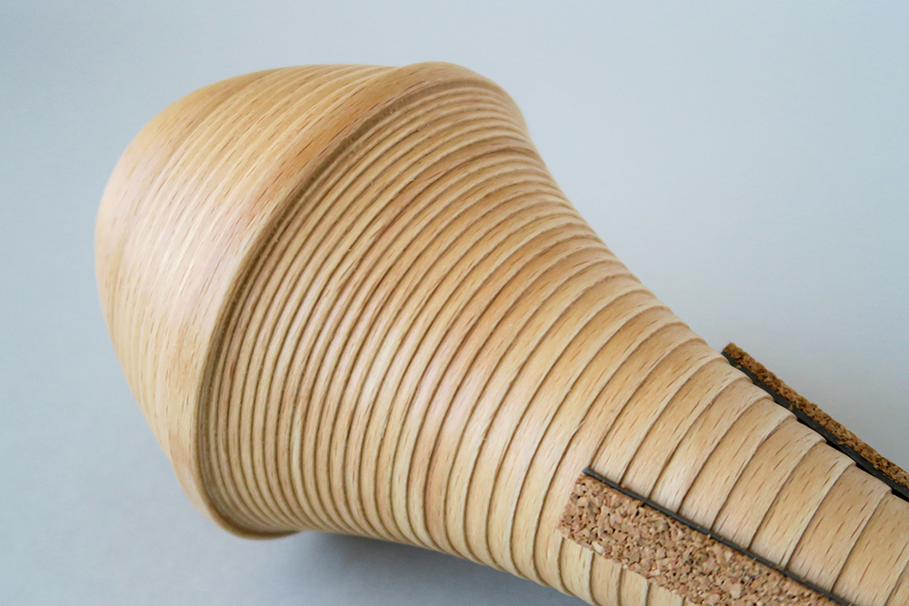 ブナのテープを巻き重ね、押し出しずらしながら成形するブナコ独自の製法により、