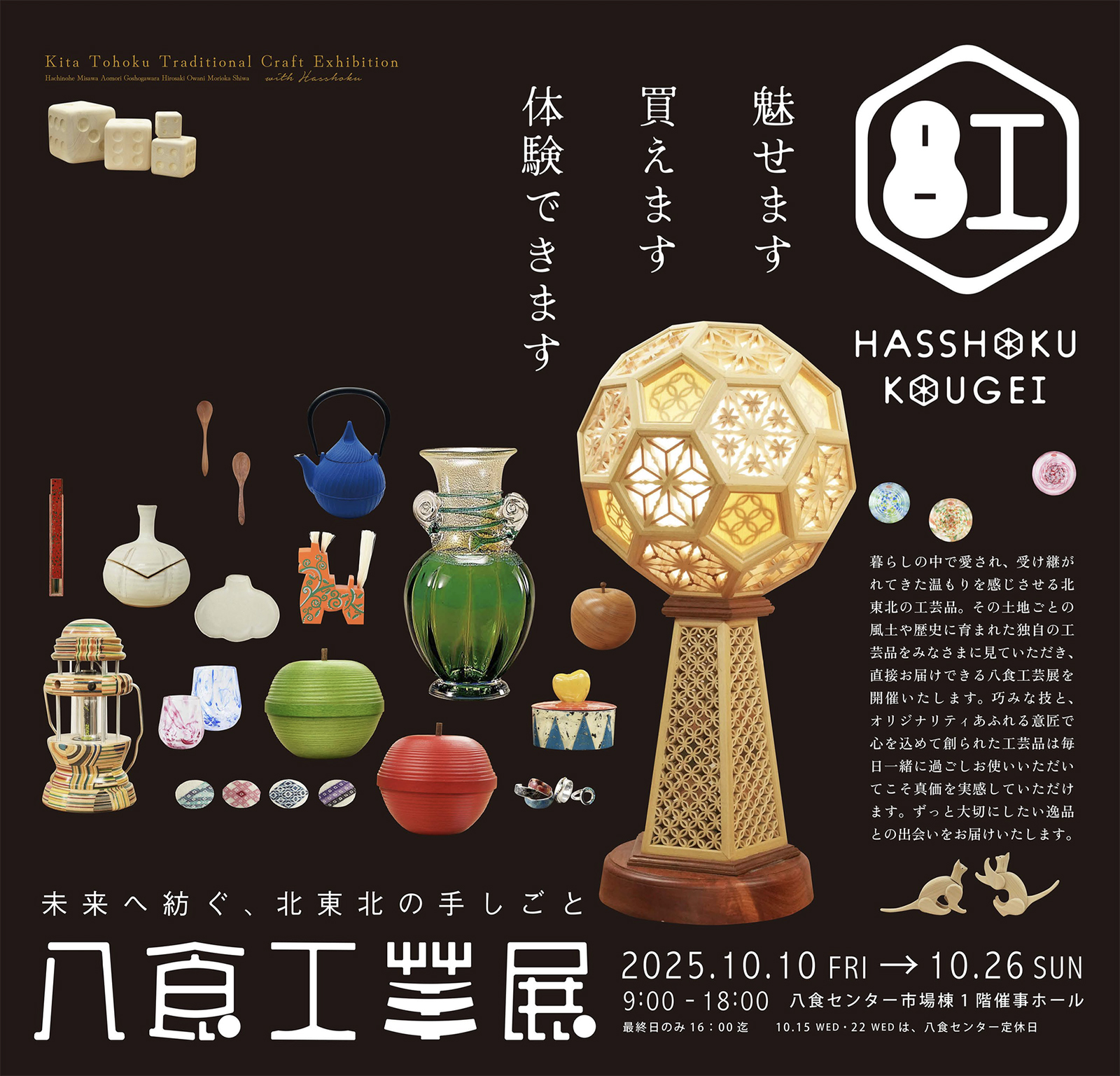 2025年10月11日(土)に青森県八戸市 八食センターにて開催予定です。詳しくはNEWS 八食センター「八食工芸展」をご覧ください。